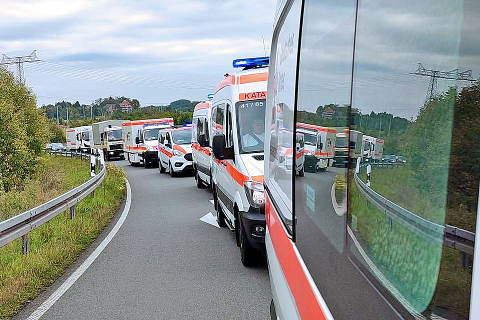 Sie übten am Samstag (27.09.2025) eine Kolonnenfahrt mit ihren Einsatzfahrzeugen. Diese sogenannte Fahrt im geschlossenen Verband dient in der Realität zum Verlegen von vielen Kräften und Mitteln zu Einsatzstellen hin, mit dem Ziel, sicher, rechtzeitig, vollständig und in einem einsatzfähigen Zustand anzukommen.