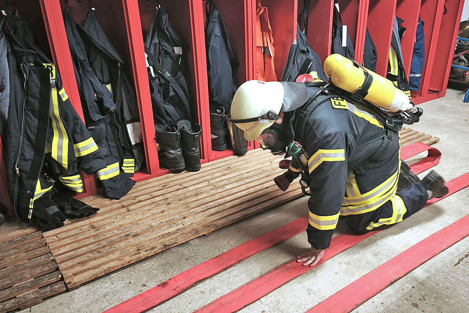 Nach dieser spannenden Theorie durften alle Kinder selber Hand anlegen. Die Funktionen einer Einsatzuniform nebst Ausstattung wurden kindgerecht ausprobiert, die lautstarken Martin-Hörner der Einsatzfahrzeuge durften eingeschaltet werden und mit dem Feuerwehrschlauch wurde ein „Feuer“ gelöscht.