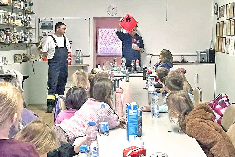Gestartet wurde gemeinsam mit einem leckeren Frühstück. Diesem folgten dann wissensreiche Ausführungen zum Beispiel dazu, welche Ursachen die Entstehung eines Brandereignis haben kann, wie die W-Fragen beim Absetzen eines Notrufes lauten und welche Aufgabenfelder eine Feuerwehr über die Brandbekämpfung hinaus hat.
