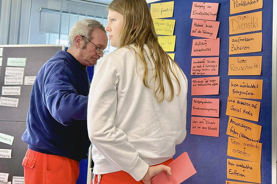 Im Vordergrund standen Themen wie Ablauf im Einsatzfall, Strukturen und Vorschriften im Zivil- und Katastrophenfall, Orientierung im Gelände mit Karte und Planzeiger, Verhalten im Dienst bei Einsatz und Registrierung von Helfern und Verletzten. Ein durchaus komplexes Gebiet, welches bei allen Freiwilligen auf großes Interesse stieß. Ein großes Dankeschön an unsere beiden Dozenten, Kreisbereitschaftsleiter Robert Kirchhof und Steven Schneider, die dieses Modul außergewöhnlich informativ und anschaulich gestaltet haben.